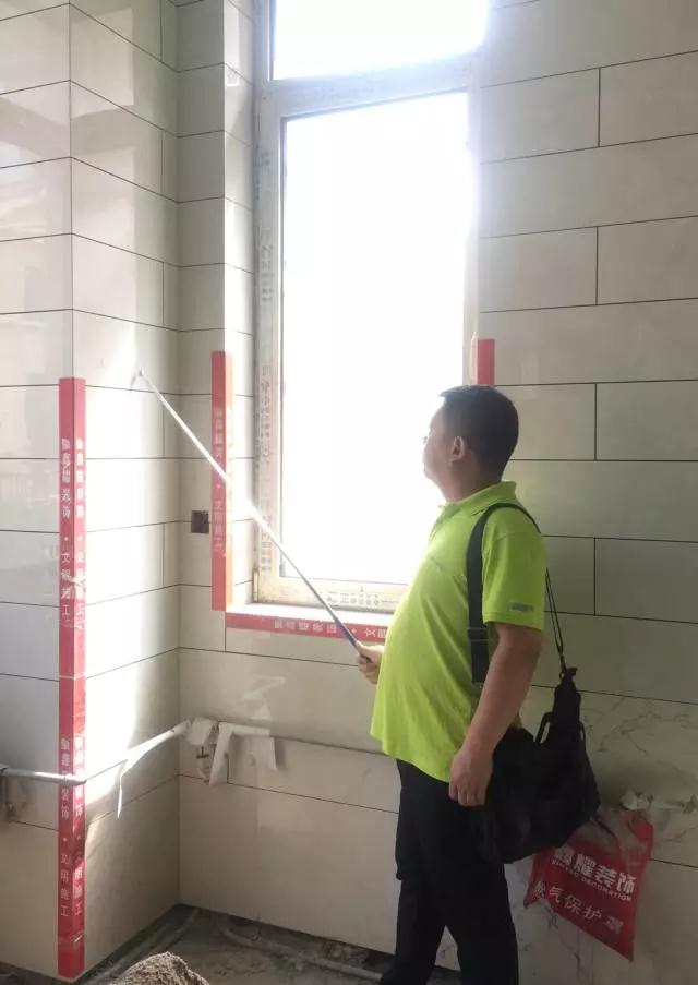 主材部張經理正在做墻磚空鼓檢測